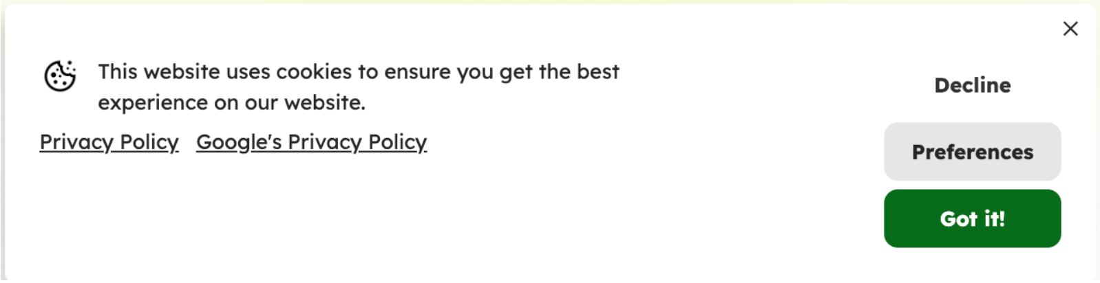 - Displays a cookie banner visitors actually understand, with clear Accept and Decline buttons